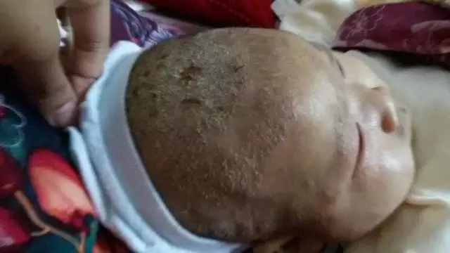 這張圖片中寶寶臉上是較典型的膿皰疹,出現(xiàn)熱疹后如果沒有控制好嚴(yán)重下去繼發(fā)感染就會(huì)形成膿皰疹。