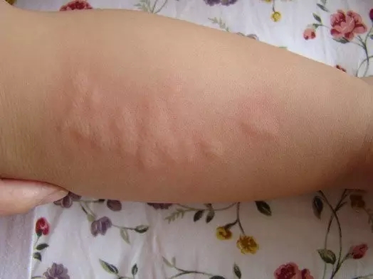 圖中是大腿根部抓撓后出現(xiàn)蕁麻疹,可以看到明顯的小風(fēng)團(tuán)。